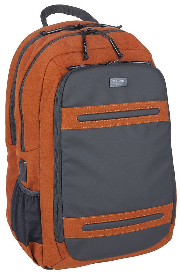 The Digital Pro Backpack in Olive, Rust, and Black is the ideal daily business accessory to hold your laptop, tablet, phone, cables, pens, and business cards in the 2 main compartments and 3 additional compartments. All-day comfort is ensured with a padded back, padded and adjustable carry straps as well as a padded top handle. The Trolley Sleeve allows for secure attachment to other luggage while on the move and there is a convenient and easily accessible bottle pocket. Conquer new challenges with the exciting Cellini Explorer range of digital organizers which also include a USB charging port and Scanstop to prevent unwanted card scans. This collection of business accessories has been designed with the modern entrepreneur in mind.